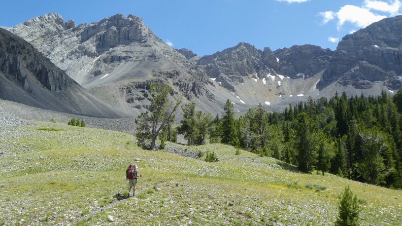 At about 11 am Saturday morning we set off on a 20-mile loop trail that followed Nicholia Creek to it’s headwaters, then took us up and over a beautiful pass to the Deadman Creek drainage (maps included in photo tour – link below). That evening, 10 miles into our journey, we left the main trail, following a .5-mile path up and over a low point on the Continental Divide to Divide Creek Lake in Idaho – just a few hundred feet east (yes, east) of the Montana border. Highlights of the day included discovering a glorious spring just before crossing the pass, visiting with another group from Helena, walking past an amazing anticline (geology thingy), swimming in the lake, and eating dinner on a picnic table.