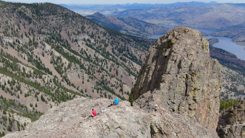 Both hikes were VERY rewarding! Our prize on Friday was time alone on the nose of the Sleeping Giant, one of the most unique and finest summit experiences in the state. Both Amy and I have been there several times but it was the first for Wade. It was GREAT to get him up there, and it was also fun to get my drone out and take some really cool photos – a first for me on the nose (see photo tour). As for Hyalite Peak, there was a steady stream of people going up and down all day but it was equally amazing. The views were fantastic and the weather was perfect but the highlight was that this was the first time Mark and Freedom have ever climbed a 10,000-footer. I could see that they both learned something good about themselves by pushing through fatigue to reach the top. Witnessing this, and then watching Amy give her big brother and Freedom a flash-course in glissading on the way down, made my day – the best one of the summer so far.