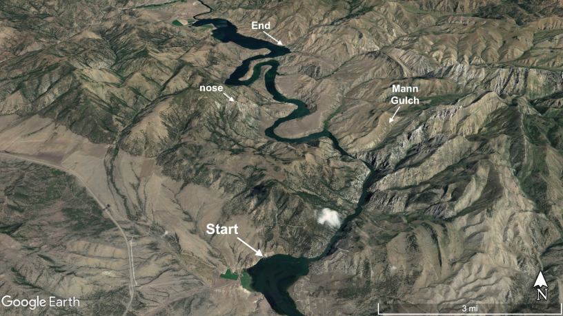 Once through the canyon, there was no shortage of sunlight to warm our backs, and plenty of time to enjoy the landscape. Highlights included passing by Mann Gulch and Rescue Gulch, drifting along cut banks made of silt deposited at the bottom of ancient Glacial Lake Great Falls, and paddling below the rugged mass of rock that comprises the head of the Sleeping Giant – a famous Helena landmark. We took a couple breaks along the way before rounding Oxbow Bend and crossing the southern edge of Lower Holter Lake. My son Keith was there to shuttle us home.